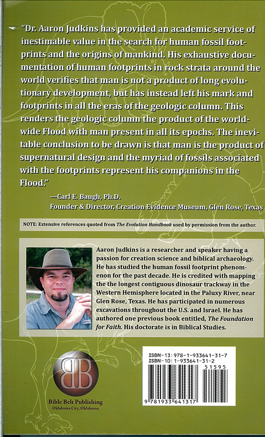 Judkins’ book is not worth reviewing, it is mostly a compilation of quotes from other creation science material in which he manages to add his own misconceptions of the interpretations of other creationist whose own works are fraught with scientific misconceptions. So you can image how contorted some of the scientific deductions and claims are in this book. Of course, Judkins main interest is in what he thinks is slam-dunk evidence against evolution: the identification of human footprints found in all ages of rocks around the world many times in conjunction with dinosaurs.