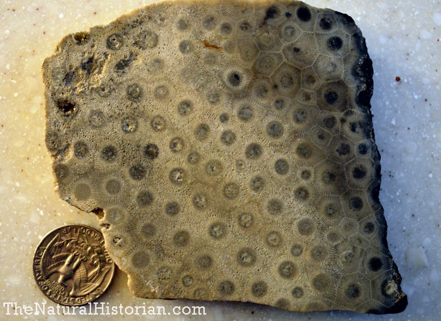Coral can make beautiful fossils. Some parts of this coral are preserved in incredible detail.