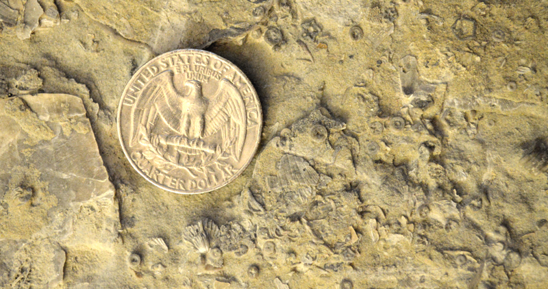I have collected along road cuts leading up from the Ohio River in Kentucky many times. There are hundreds of feet of layers of limestone rock there that look like this. They are just full of shallow ocean shells and crinoids. I have written about these vast layers of fossils in the past (Covered in Shells: How Many Fossils Are there?).