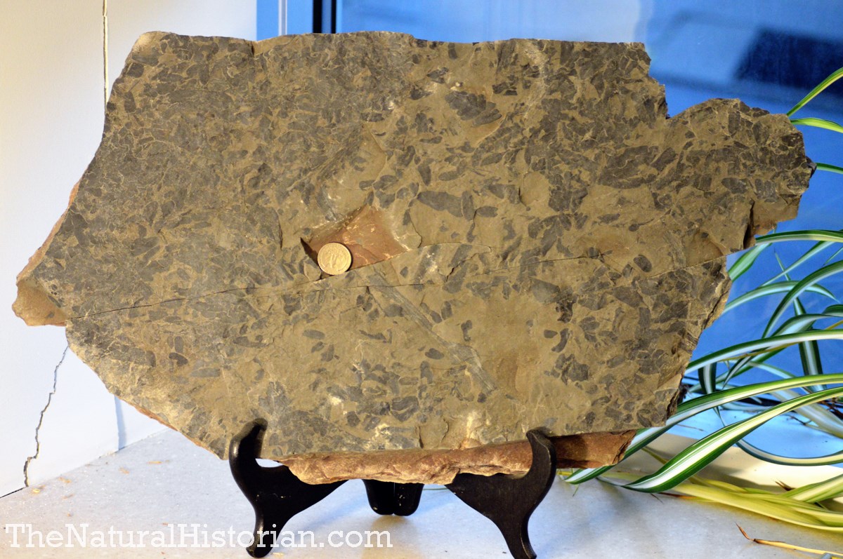 To the right is a drawing of a Calmites tree. Above are the stems but I also have remains of the leaves in my office as well (below). These tree once covered vast areas of the earth but are now extinct. Their remains likely make up billions of tons of coal.