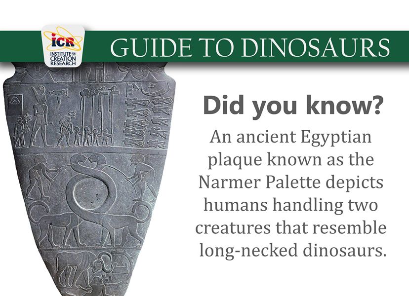 This graphic is typically seen by a Facebook or ICR website audience in a smaller format and so the details of the animals are obscured. An audience shown this image likely will be drawn only to the neck and not have time to take note of the other features. My first image above shows greater detail and the ICR staff are clearly aware of the details of this image. I find it difficult to imagine they can honestly believe that these images where meant to depict dinosaurs interacting with humans in Egypt.