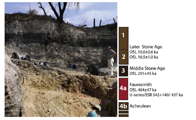 Porat, N., Chazan, M., Grün, R., Aubert, M., Eisenmann, V., & Horwitz, L. K. (2010). New radiometric ages for the Fauresmith industry from Kathu Pan, southern Africa: Implications for the Earlier to Middle Stone Age transition.Journal of Archaeological Science, 37(2), 269-283.