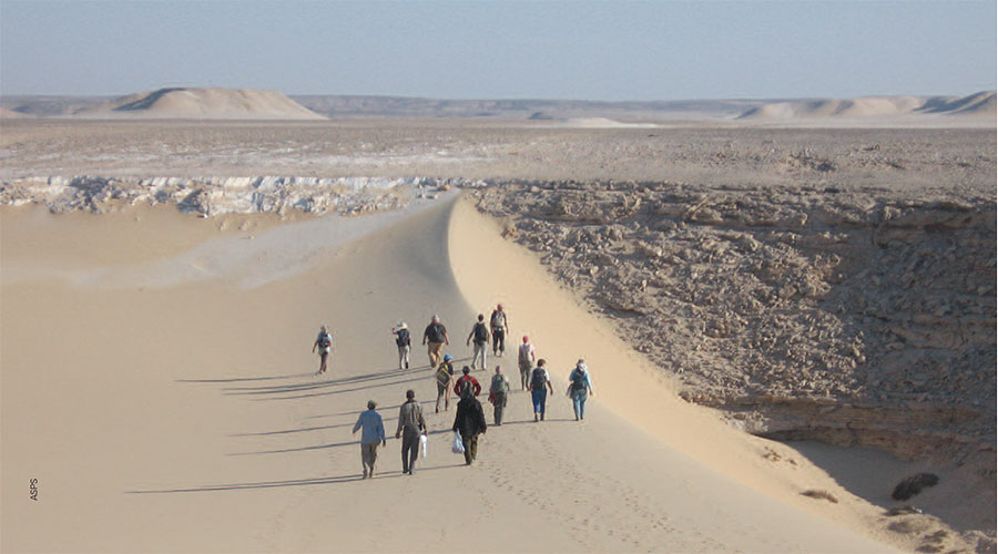 Our first destination in Egypt is the desert to the west of the Nile River, near the city of Abydos. Here an area approximately 63 square kilometers was surveyed by walking lines and every 100 meters close to the Nile River, or every 250 meters in the remote desert regions, after which a one-meter radius collection circle was drawn on the ground and all of the stones visible on the surface that appeared to be potential artifacts were collected. Altogether, the team of scientists (see Olszewski and colleagues reference below) took collections from 1915 of these plots. Those determined to have authentic stone artifacts included 132 sites that they called “high density” locations and 451 lower density sites.