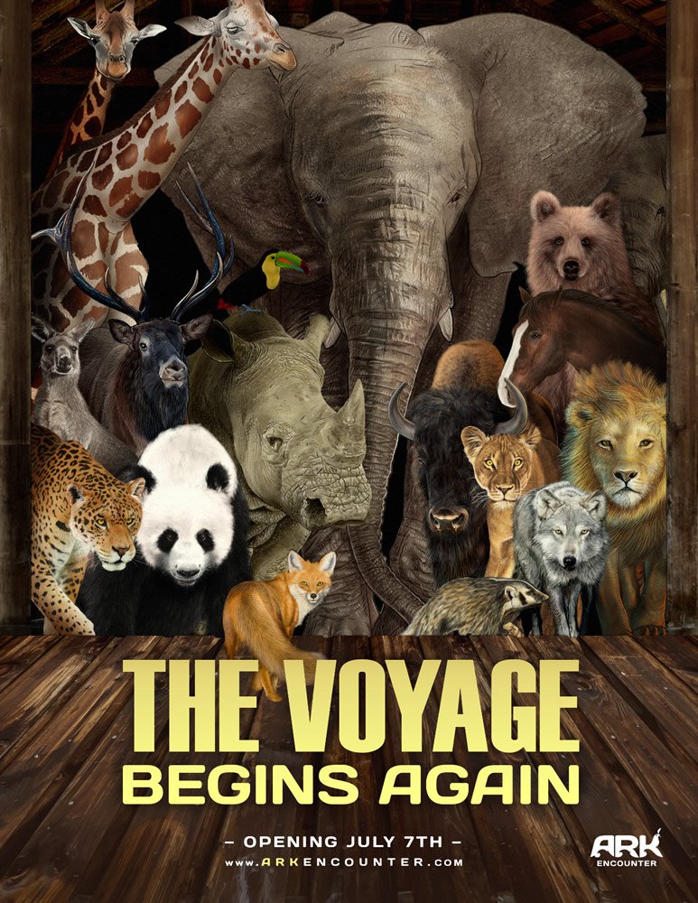 This campaign is sending confusing mixed signals to those that will eventually plunk down their money to see the ark. What they will encounter is a menagerie of strange amalgamation of many species of animals that presumably represent the original kinds which were the actual animals that were on the Ark. I expect their will be qualifiers on the cages that these depictions will be their “best guess” at what the animals looked like but they are certain of one thing: the animals depicted on this poster were certainly not what the animals on the ark looked like. And yet, this is how they are advertising the truth.