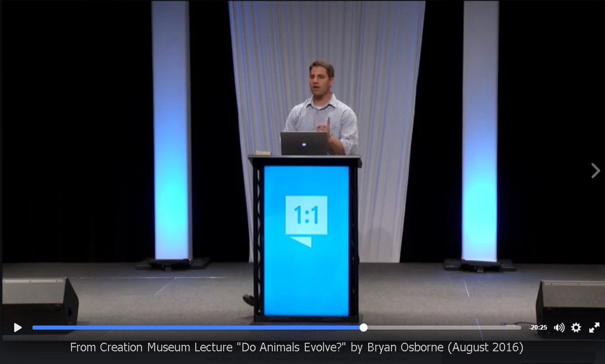 Below I provide some reactions to a talk given at the Creation Museum and posted on the Answers in Genesis Facebook page on August 10th, 2016. The speaker, Bryan Osborne, at the time was a relatively new employee of Answers in Genesis. Osborne has a master’s degree in Education from a Christian college and was a bible teacher prior to coming to Answers in Genesis. He has no formal training in science though he is now tasked with speaking about science.