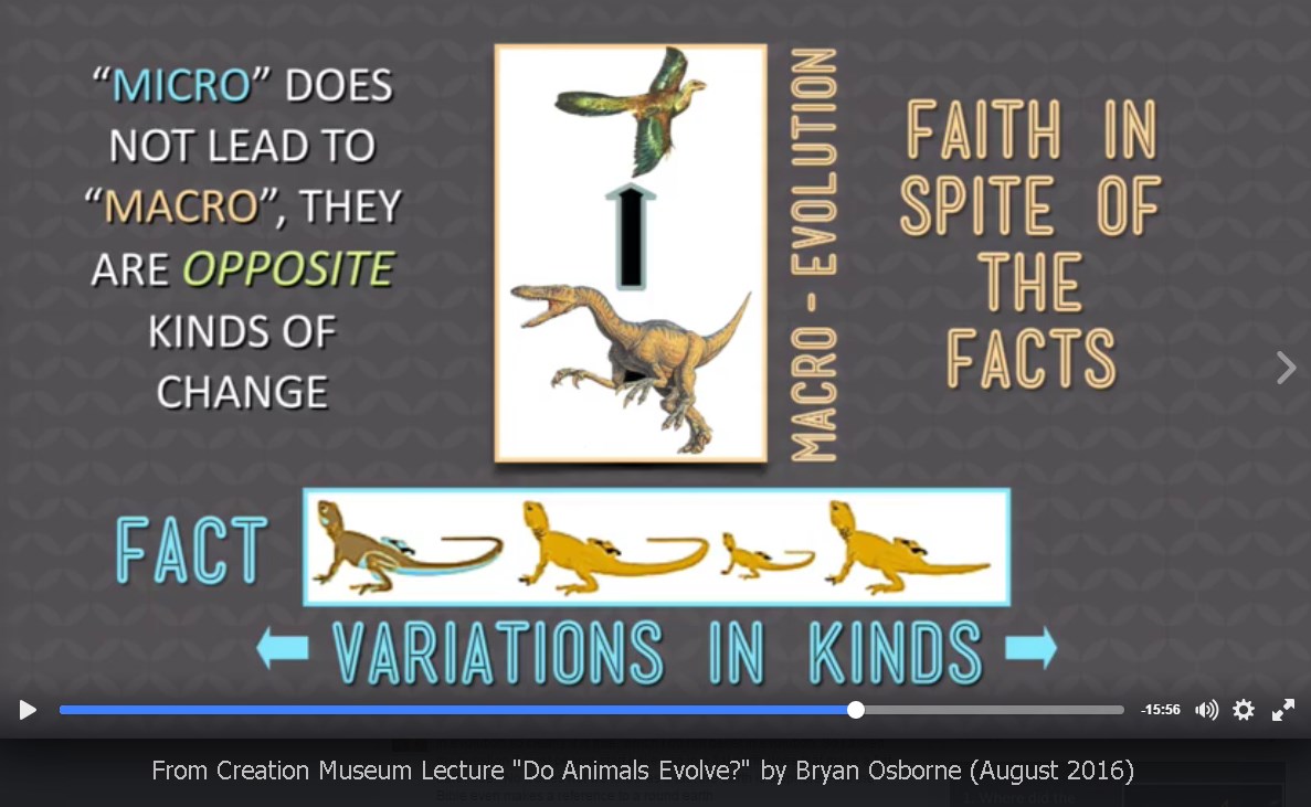Below I take you through some of the slides, not necessarily in order, of Osborne’s presentation as they relate to the question: Do animals evolve? All of the images below are screenshots that I made from the video posted on Facebook by Answers in Genesis. You can watch the presentation here to check my interpretation and transcription of his words.