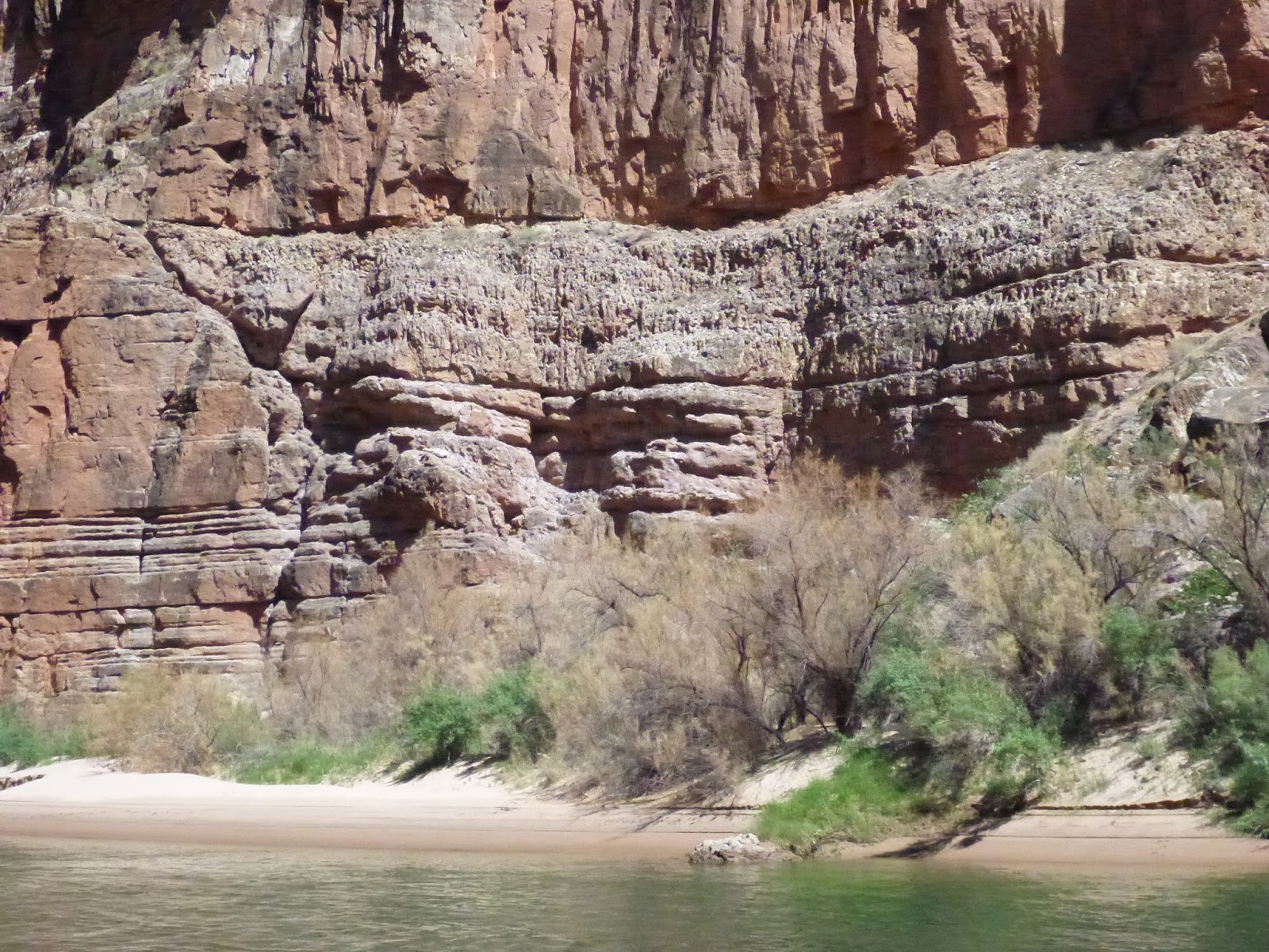 There are many places where we can identify topographical variation in the contact regions between layers where the sediment below had been eroded by small and large stream systems. In the global flood context water moving quickly across a continent might explain the overall flat contact of layers—though no better than a shallow sea model—but the observation of meandering stream beds at those contact layers contradicts the flood model.