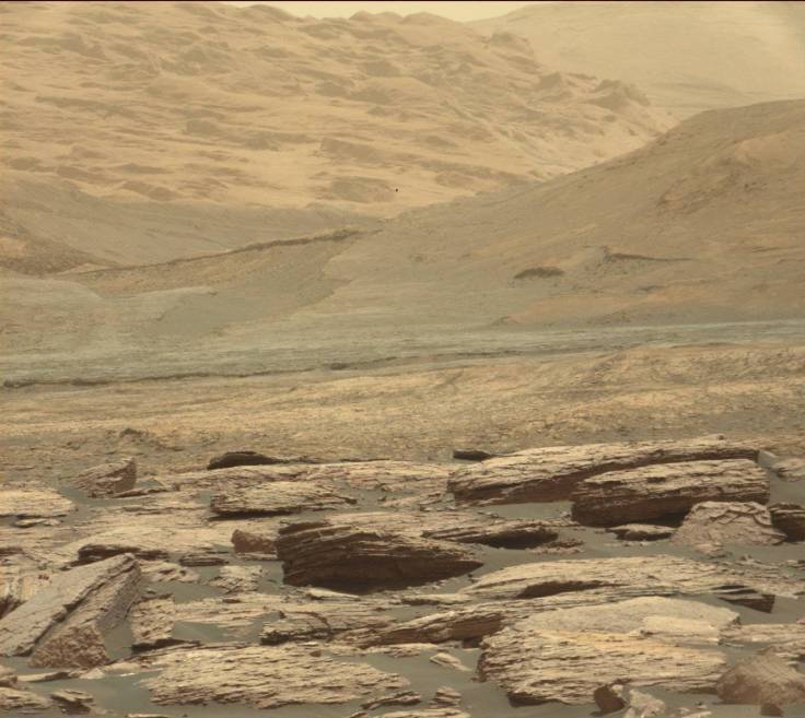 Curiosity took this photo from Yellowknife Bay, looking west-northwest up a series of scarps created by wind erosion. NASA / JPL / MSSS