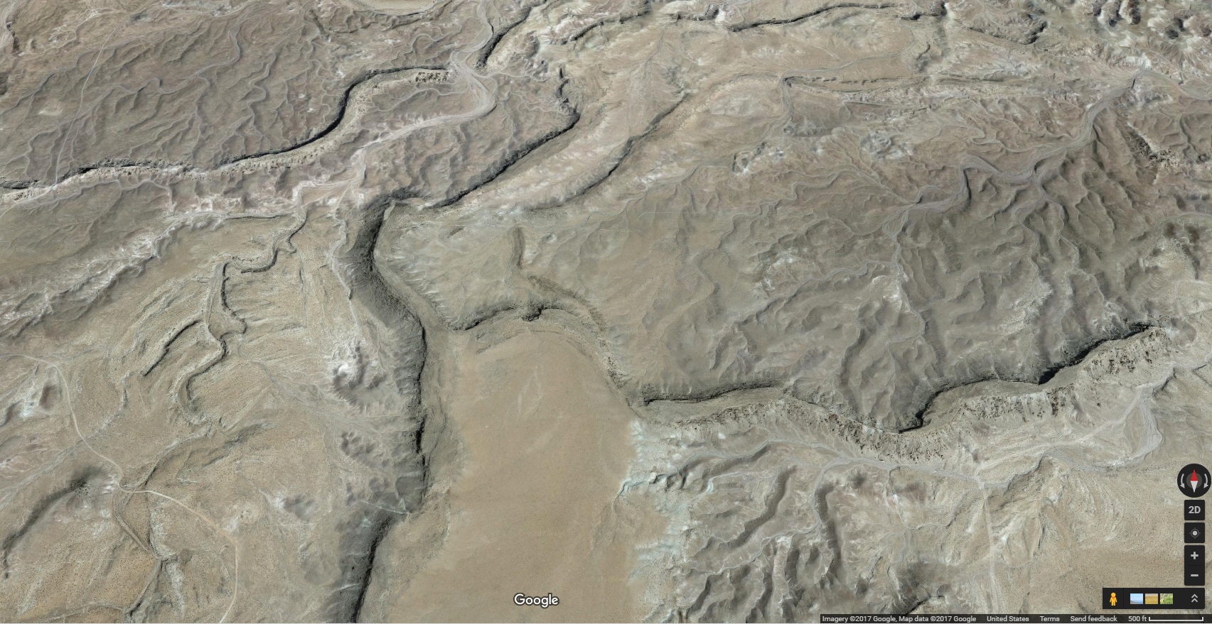 Another close-up satellite view of the paleochannel in Utah.  Google and the Google logo are registered trademarks of Google Inc. and used with permission.