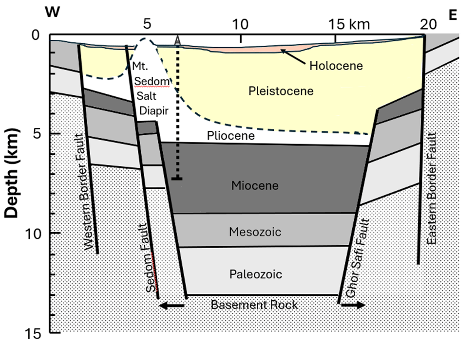 - The geological and seismic history of the Dead Sea basin, including the formation of its unique salt and sediment layers.