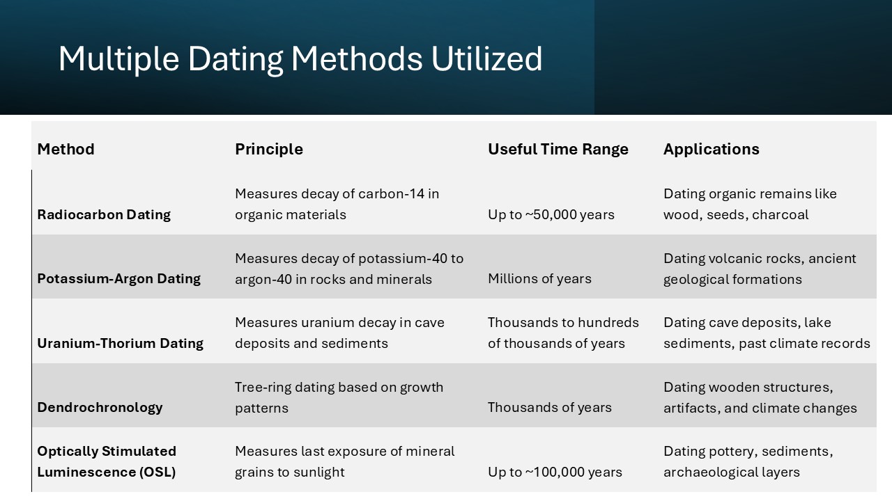 When it comes to figuring out how old these ancient settlements are, scientists don’t rely on just one method. Instead, they use a diverse set of dating techniques many of which are independent of each other. It’s kind of like using multiple witnesses to corroborate a story – if they all agree, you can be pretty confident you’re getting the truth.